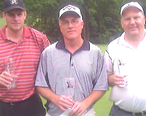 While play was affected by a thunderstorm that hit after about 13 holes were completed and caused scores to rise somewhat, the four flight winners still managed to post very respectable scores for their wins. Park Williams of Kernersville shot a 76 from the 7,004 yard Gold Tees to top the Championship Flight. In the A Flight, which played from the shorter (6,387 yard) Blue Tees, Bobby Elder of Randleman won by one stroke, also firing a 76. It took a playoff for Rob Nash of Clemmon's to edge Durham's Daren Green for the B Flight title with a par on the 1st extra hole. Rounding out the four flight winners was Raleigh's Mark Harders, who's 84 topped the C Flight competition.