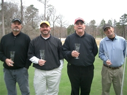 In the C Flight, High Point’s Danny Keever showed some serious grit. Still sporting stitches from some recent major surgery, Keever braved the cold, windy conditions to post a 96 which was good enough to nip Winston-Salem’s Jason Smith by a lone stroke. “My front nine was the keyâ€, stated Keever. “I had a 44, which I felt pretty good about. I kinda slowed down some on the backâ€.