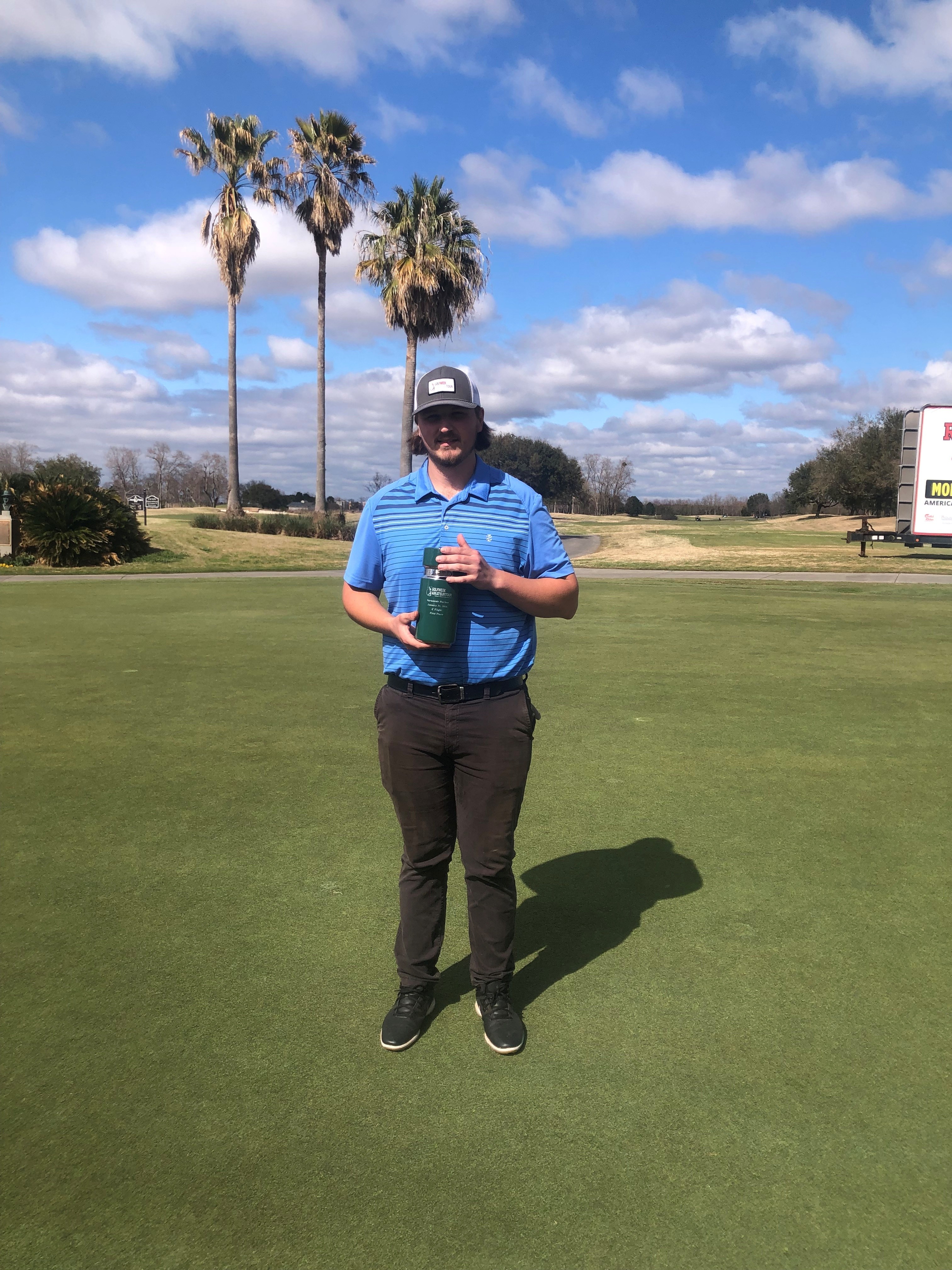 North Florida’s Lance Lacombe started slow at 2 over par after three holes but was not giving up that easily. Lacombe moved on to make a few birdies on the front and then scored four under on the back for a three-shot victory at 67. Johnny Sundstrom was impressive in the season opener with a second place 70 followed by Dylan Mulvihill at 71. Peter Grimes finished strong and in solo fourth place with 72. Four players all tied fifth (Seth Williams, Jeff Wong, Andres Lopez, Andrew Scarano) with 74’s.