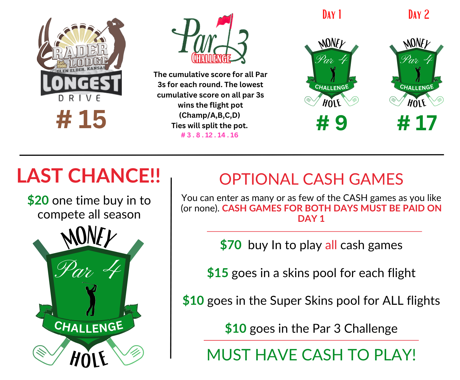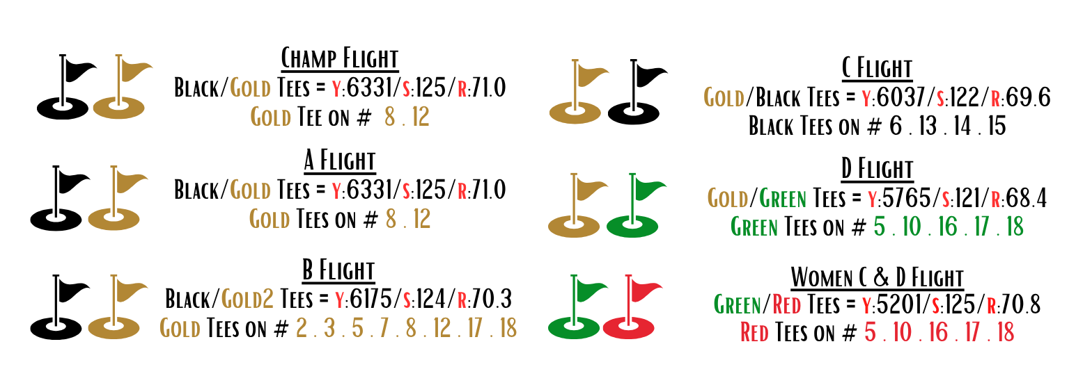 Please make sure you double-check your tee time before going to bed Friday night in case there are any last minute changes.