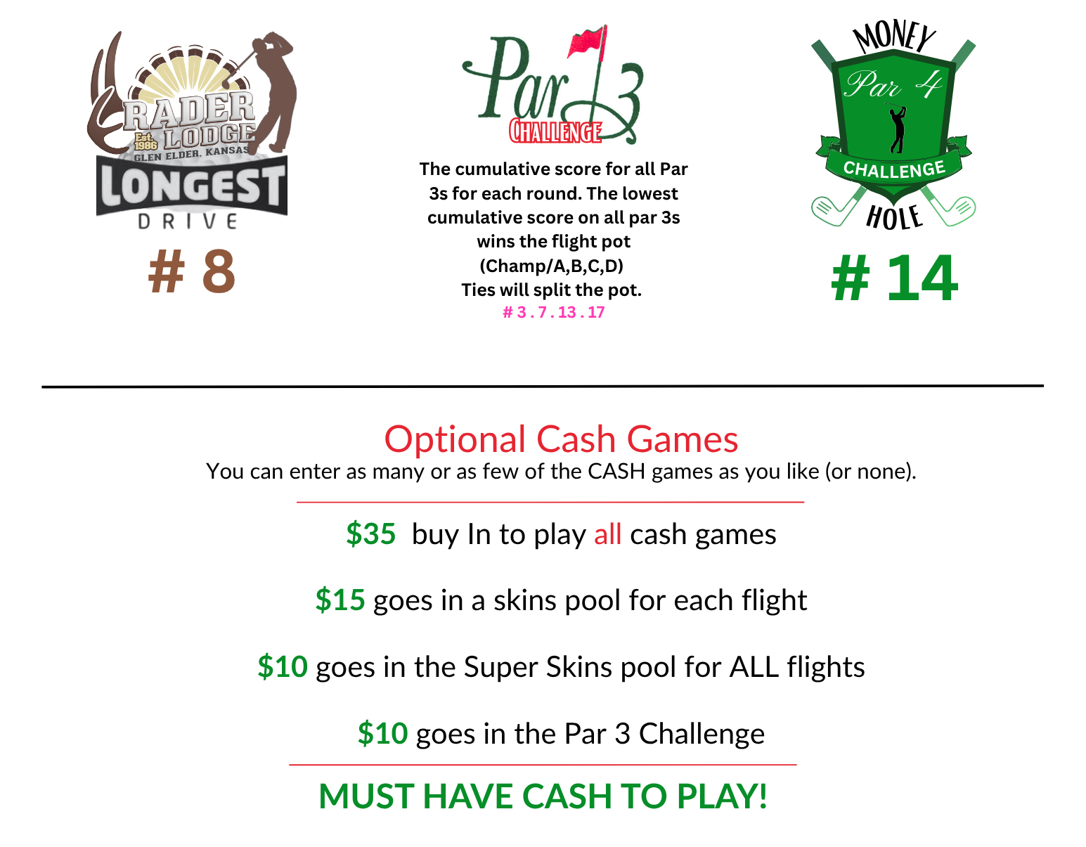 Please make sure you double-check your tee time before going to bed Sunday night in case there are any last minute changes.