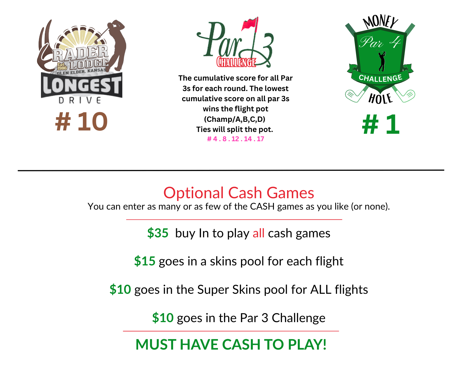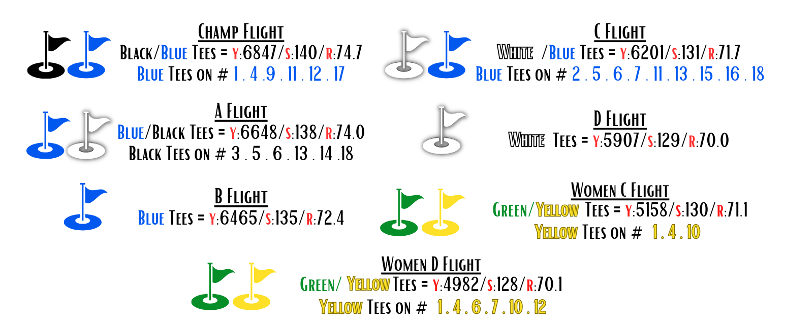 Please make sure you double-check your tee time before going to bed Saturday night in case there are any last minute changes.