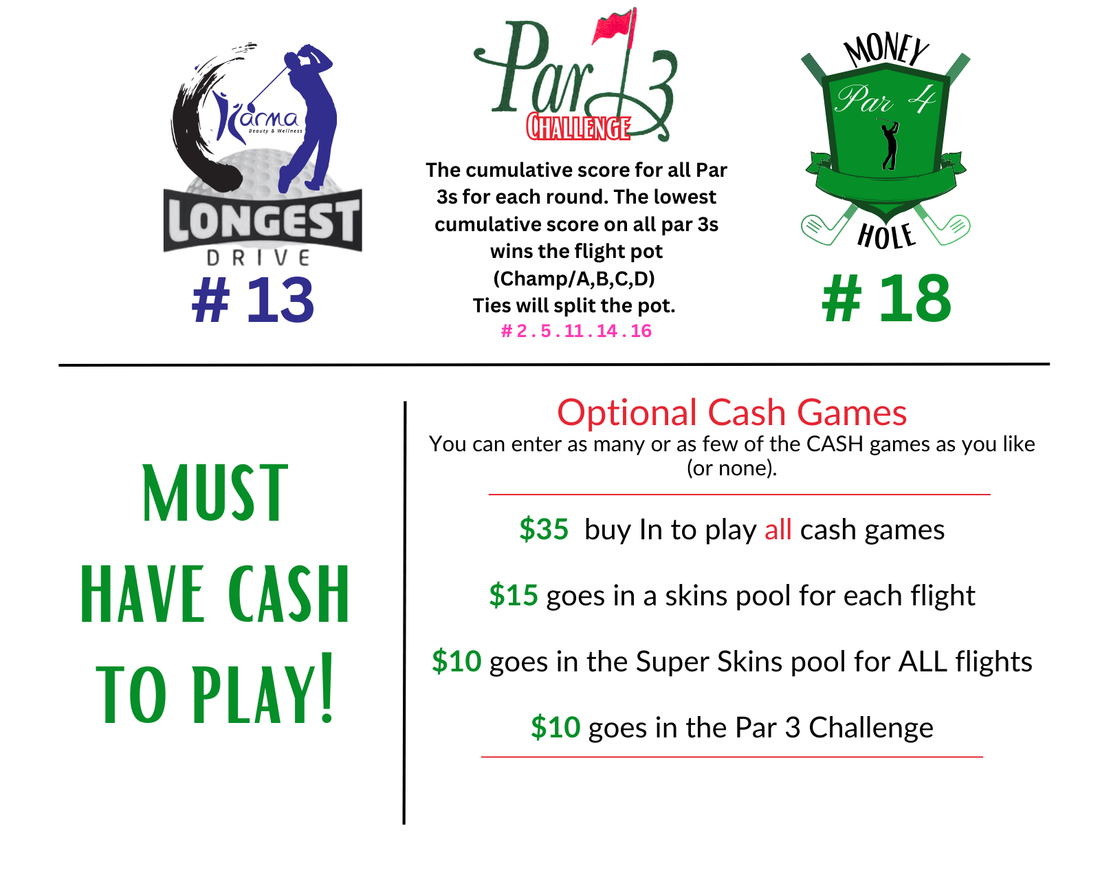 Please make sure you double-check your tee time before going to bed Friday night in case there are any last minute changes.