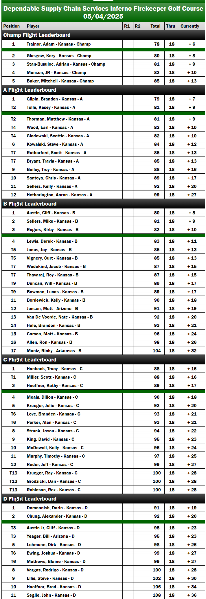 Day 1 Firekeeper 2025 - Day 1 Results