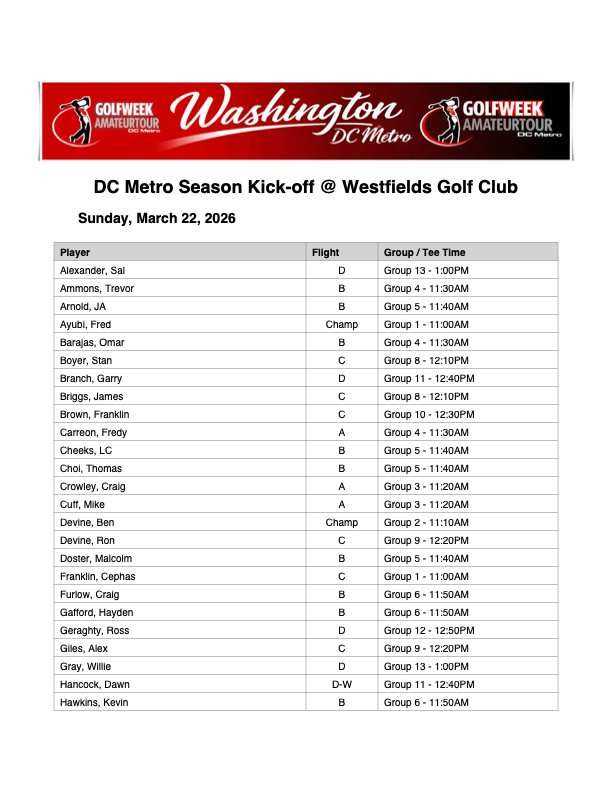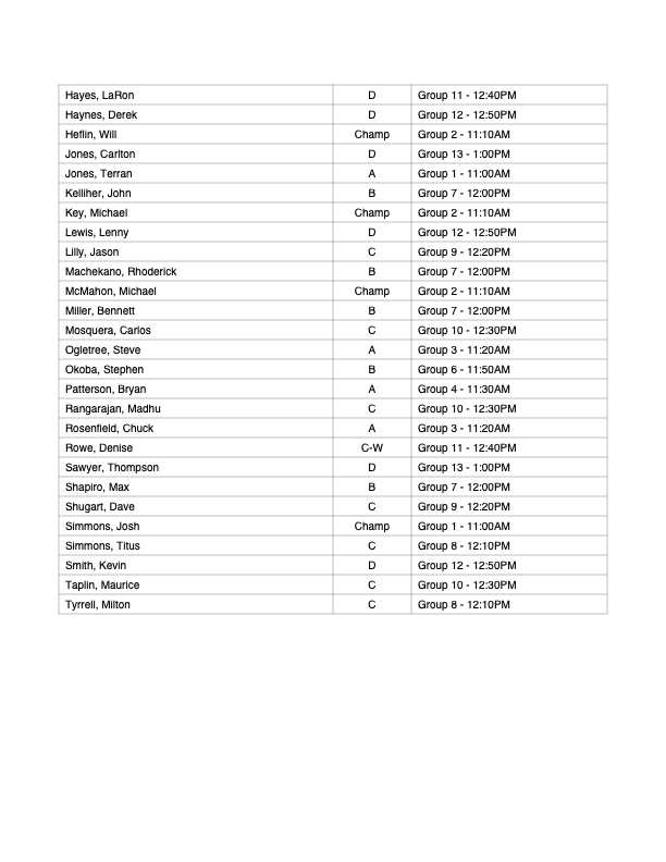 Tee Times/ Pairings