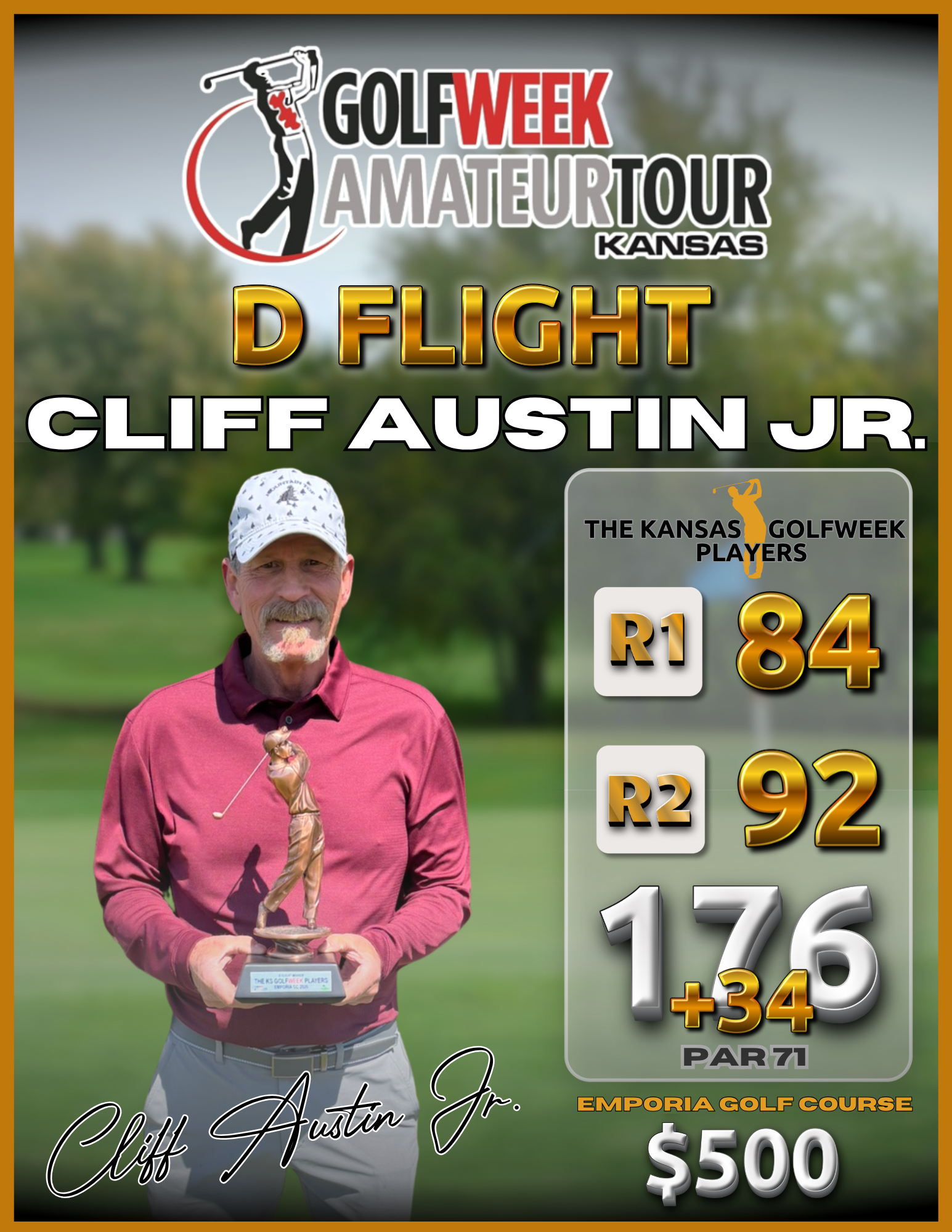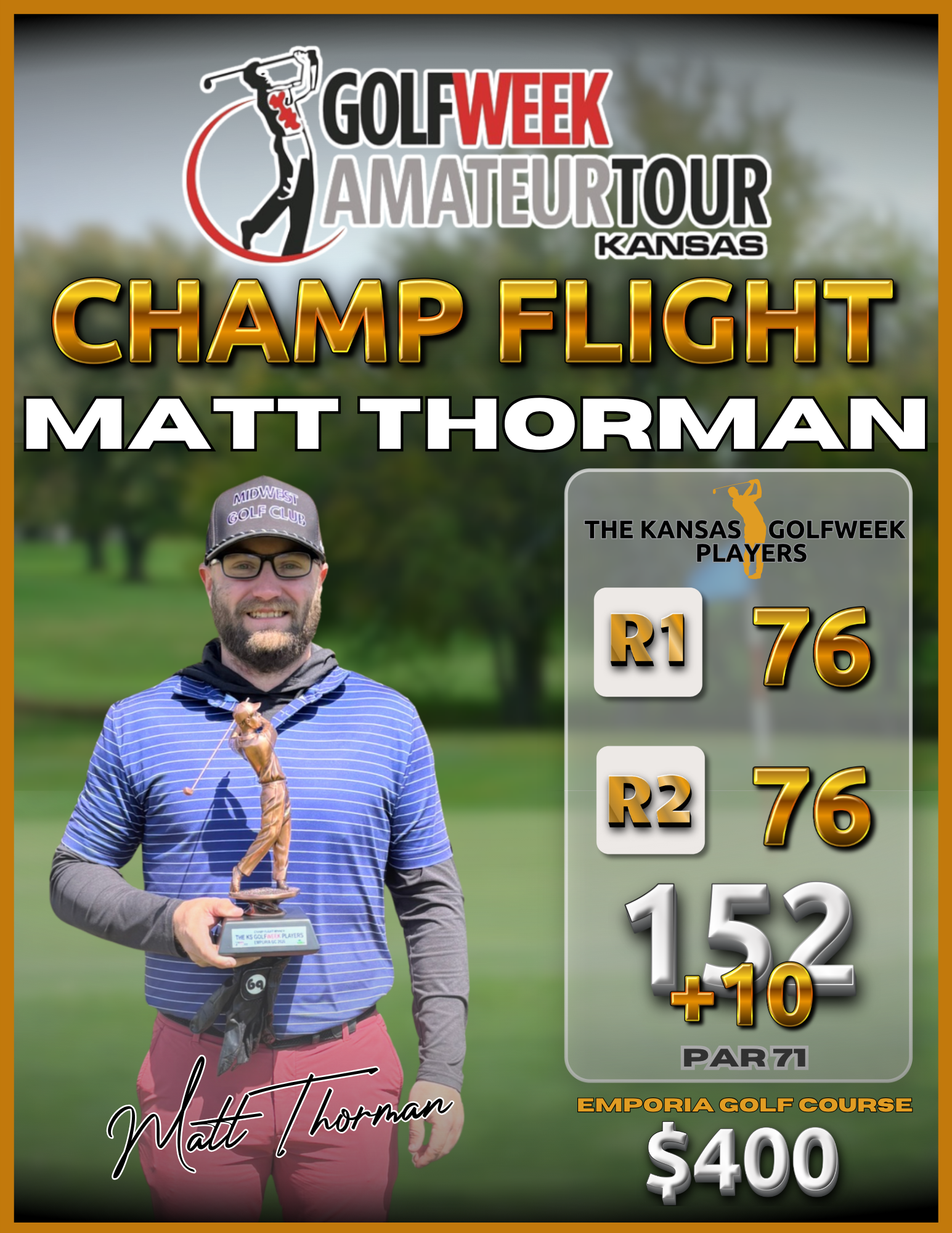 We would like to extend our sincere appreciation to Marcus Erkel and his staff at Emporia Golf Course for once again hosting our season-opening event and consistently going above and beyond to deliver a first-class experience for our players. Their dedication to maintaining the course in outstanding condition—especially the excellent quality of the greens—truly enhances the tournament each year.