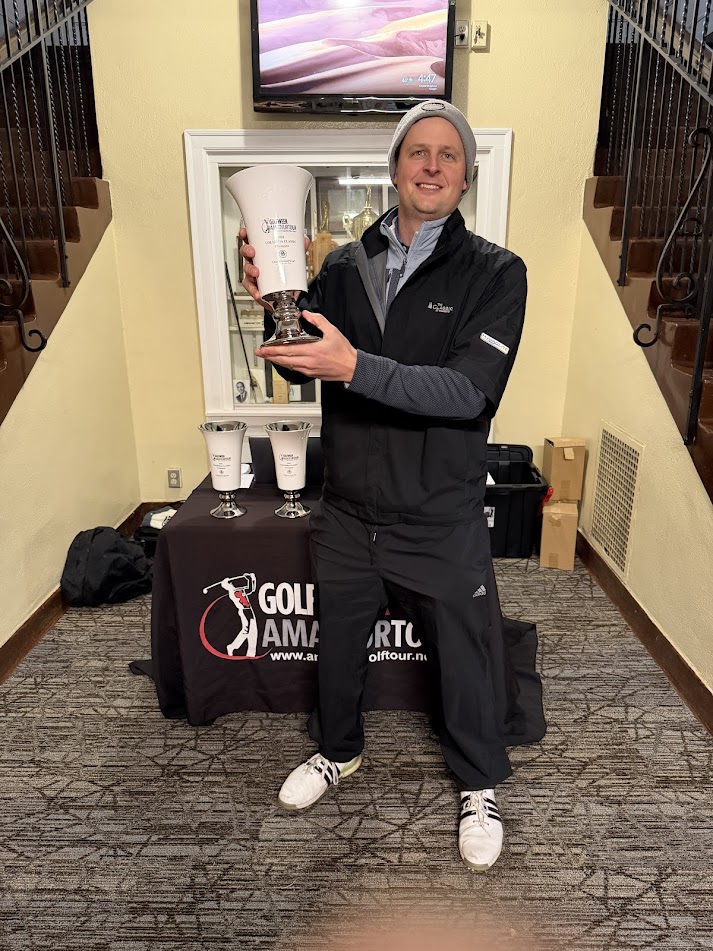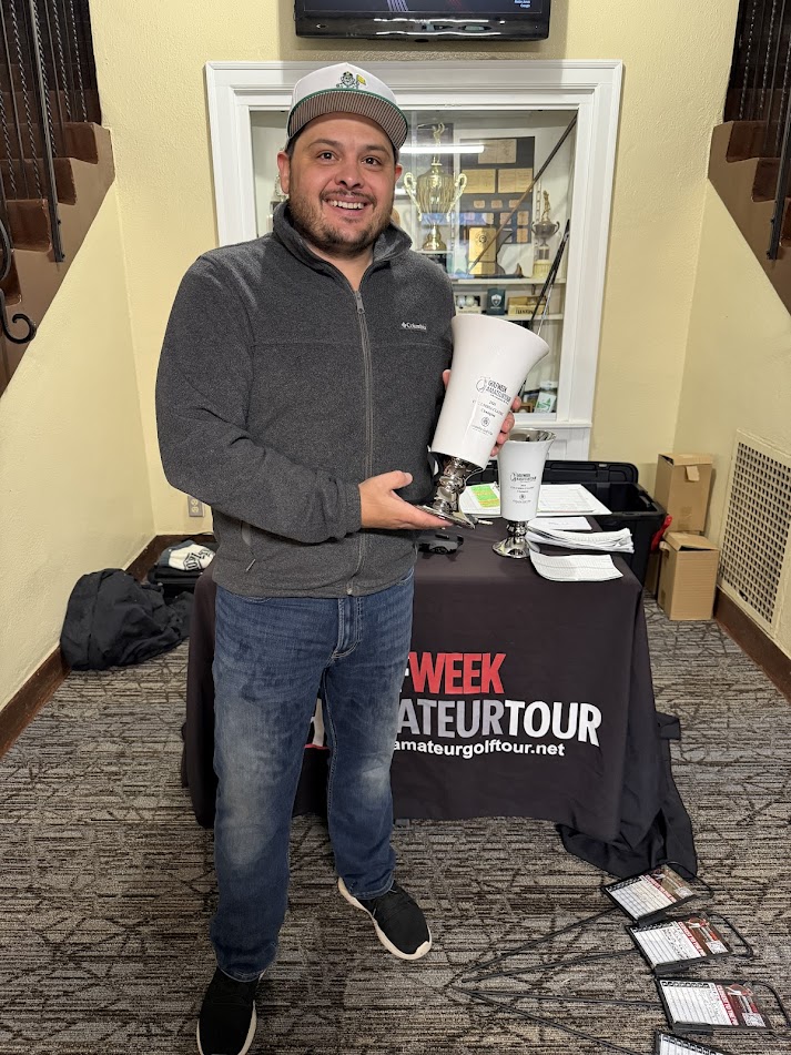WAS LOOKING LIKE A RUN AWAY VICTORY FOR DAVE ROJO WHO SHOT A 39 ON THE FRONT SIDE! HOWEVER BRANDON STRENSRUD FIRED A 37 BACK 9 TO SLIDE INTO THE LEAD AND TAKE HOME THE TROPHY WITH A 81 BEATING THE FIELD BY TWO STROKES