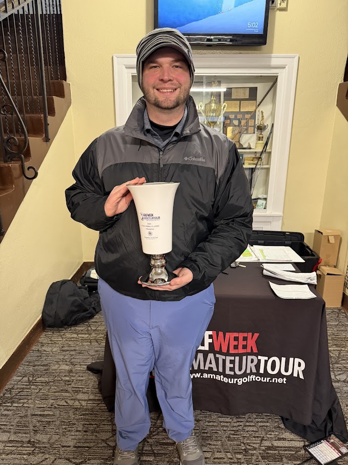 HAD THE MOST EXCITEMENT OF ALL THE FLIGHTS ON SUNDAY AT COLUMBIA. A THREE WAY TIE FOR FIRST LED TO A PLAYOFF BETWEEN AUSTIN LUDEMAN, NICHOLAS KUEFLER AND DEAN CHESTER, AFTER ALL THREE CAME INTO THE 18TH HOLE CARDING 87. DEAN CHESTER NO STRANGER TO GOLFWEEK AMATEUR TOUR PLAYOFFS PUT THE COMPETITION TO REST PROMPTLY ON THE FIRST HOLE OF THE PLAYOFF!