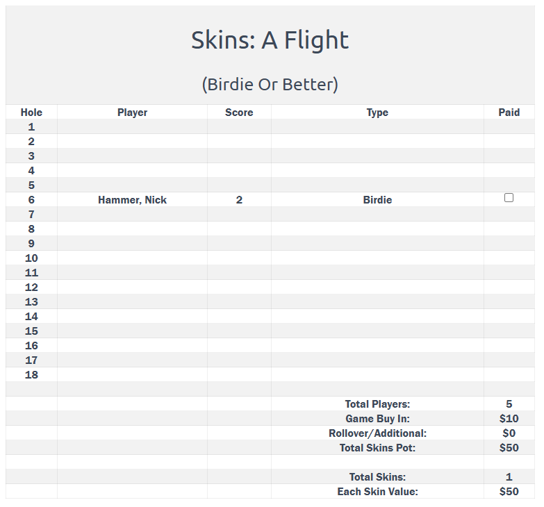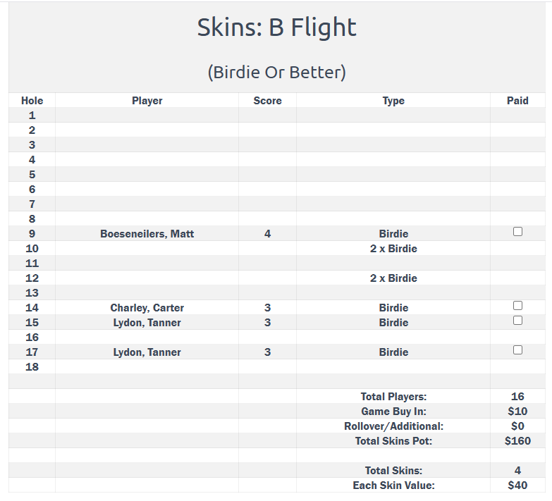 Tee Times/ Pairings