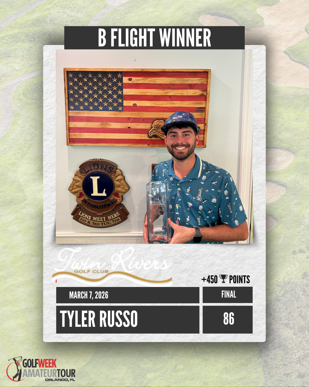 The conditions were good at Twin Rivers, but the course played really tough leading to some higher than normal scores.  James Dailey, playing in his first tournament of the year won the Championship Flight by 3 shots over Drew Peden. 2025 A Flight Player of the Year Matt Schrimpf held of Brian Soukup to get his first victory of the year.  Black Bear Golf Club is next up on April 11.