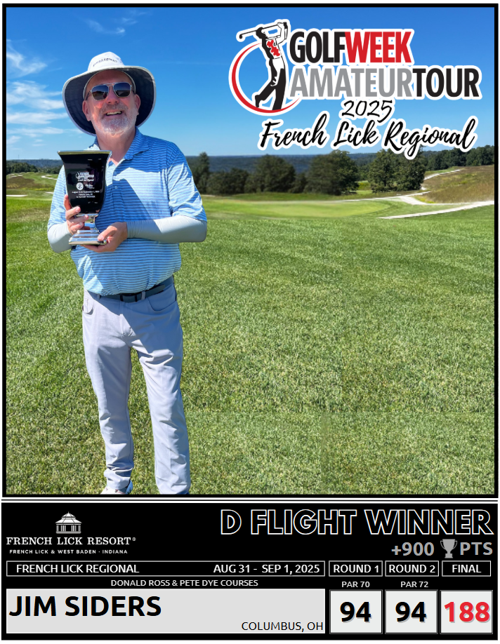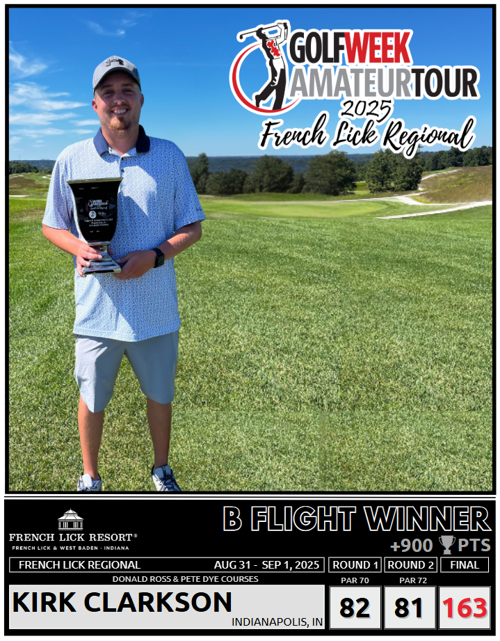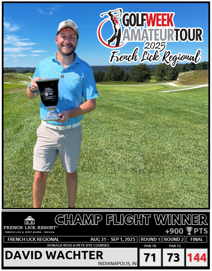 The 2025 French Lick Regional Tournament, held on August 31 and September 1 at the French Lick Resort in French Lick, Indiana, attracted 124 competitors from 28 Local Tours who showcased their skills on two of the state's most prestigious courses. The opening day featured the historic Donald Ross Course, celebrated for its classic design and challenging undulating greens. In the final round, players tackled the visually striking and demanding Pete Dye Course, which tested every facet of their games.